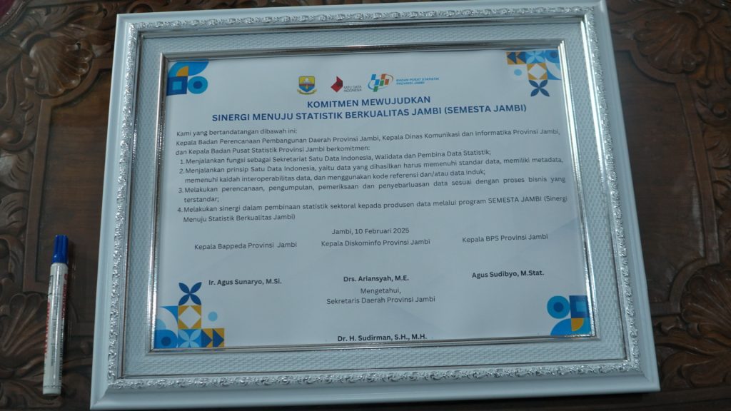 satoenews.com, Jambi- Pemerintah Provinsi Jambi menandatangani Komitmen Sinergi Menuju Statistik Berkualitas Jambi (SEMESTA JAMBI).