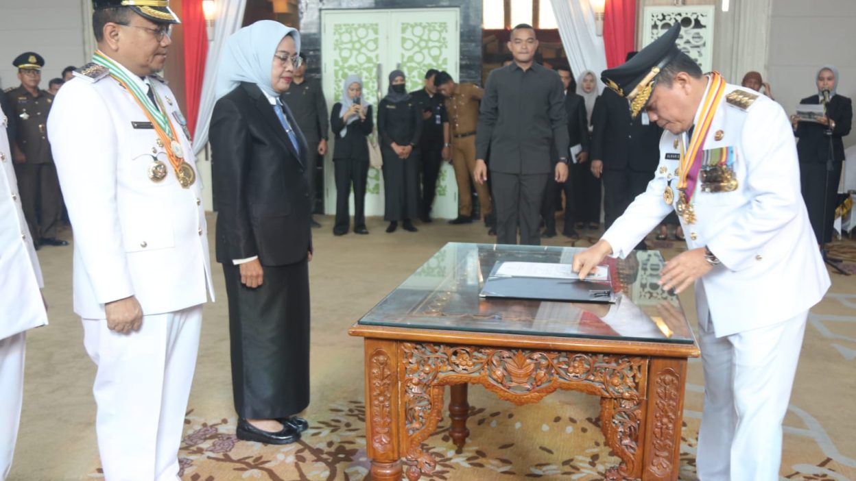 satoenews.com, Jambi – Gubernur Jambi Dr. H. Al Haris, S.Sos., MH menyampaikan akan memperkuat sinergi dengan pemerintah kota jambi. Hal ini disampaikannya pada. Serah Terima Jabatan Wali Kota dan Wakil Wali Kota Jambi, bertempat di Aula Griya Mayang Rumah Dinas Wali Kota Jambi, Senin (03/03/2025) pagi.