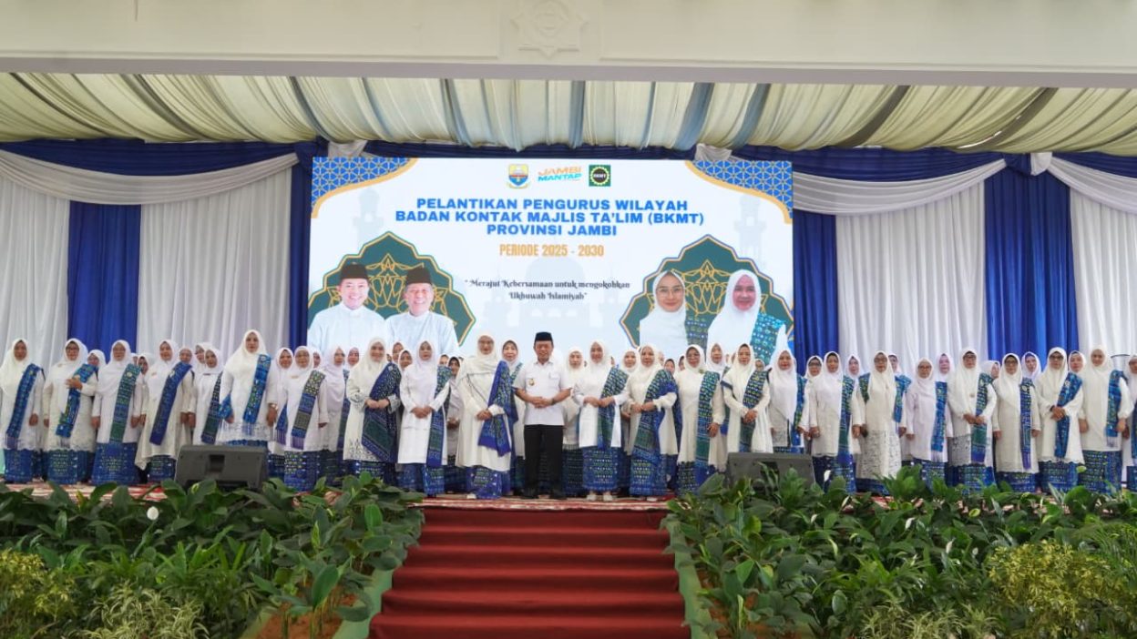 satoenews.com, Jambi – Gubernur Jambi, Dr. H. Al Haris, S.Sos., M.H., menegaskan bahwa Badan Kontak Majelis Taklim (BKMT) tidak hanya sebatas pada kegiatan pengajian, tetapi harus memperluas kiprah dalam berbagai aspek sosial dan pembangunan masyarakat. Hal tersebut disampaikannya pada acara Pelantikan Pengurus Wilayah BKMT Provinsi Jambi Periode 2024–2030 yang berlangsung di Ev Garden, Paal Merah, Kota Jambi, Sabtu (30/08/2025).